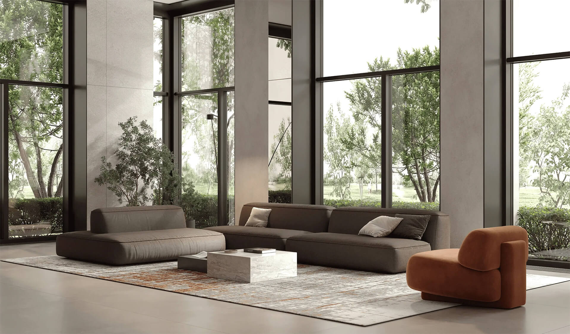 Благодаря продуманной архитектуре, лобби становится не просто местом входа в дом, а своеобразным «общим холлом» жизни — его простор, естественное освещение, функциональность и эстетика отражают философию комплекса: премиальный бизнес-класс, комфорт и внимание к деталям.